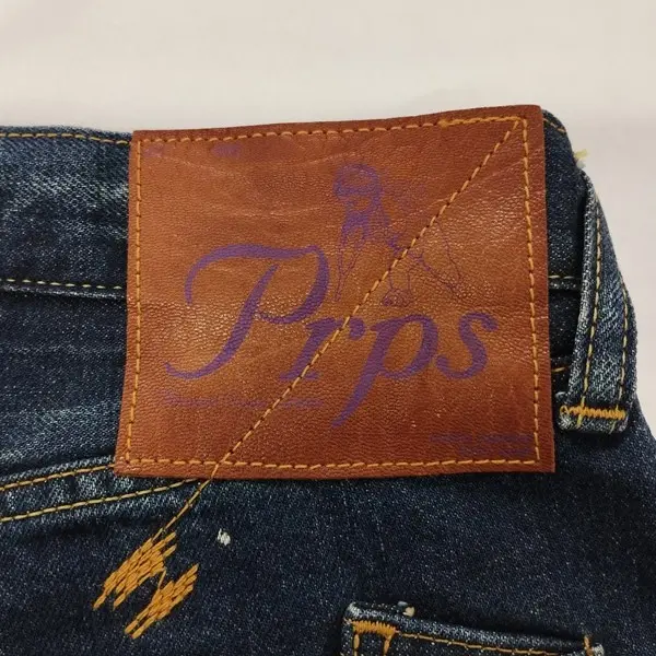 Prps ピーアールピーエス デニムパンツ 32 インディゴ 日本製 リペア・ブリーチ加工 コットン100 紫製品