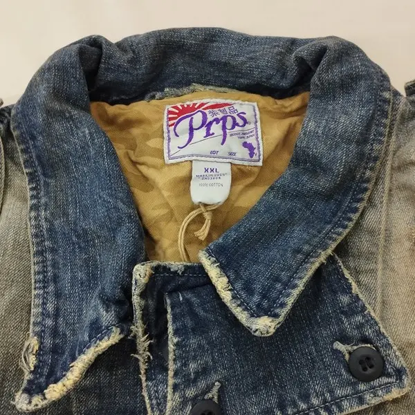 Prps ピーアールピーエス デニムジャケット XXL インディゴ 日本製 ヴィンテージ加工 綿100 紫製品
