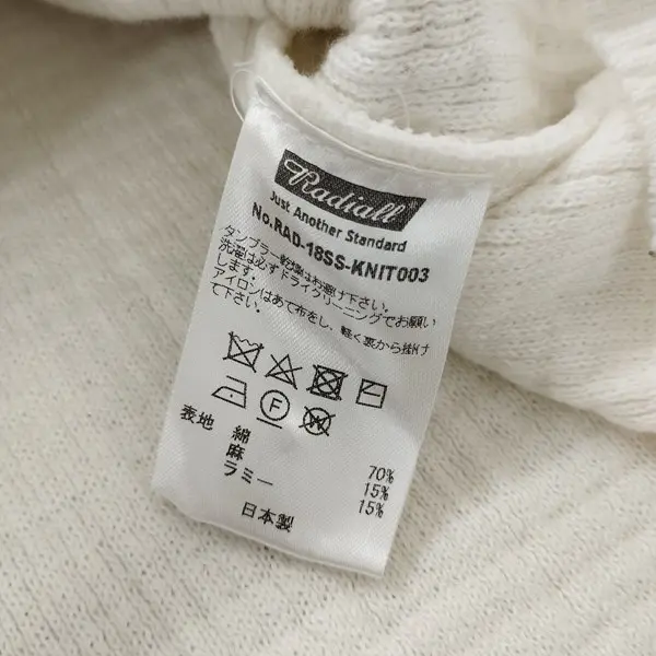 RADIALL ラディアル COSMIC GIPSY NO COLLARED SWEATER M ホワイト 日本製 ノーカラーニットセーターの買取金額