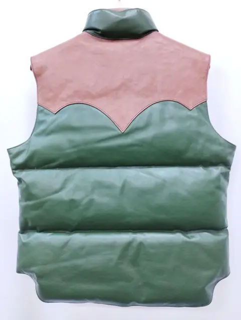 RAINBOW COUNTRY レザーベスト M ブラウン×オリーブ California MFG ALL Leather Down Vest