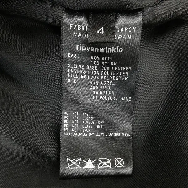 RIPVANWINKLE レザー切替 ウール スタジャン size4 + レザーベルト 日本製