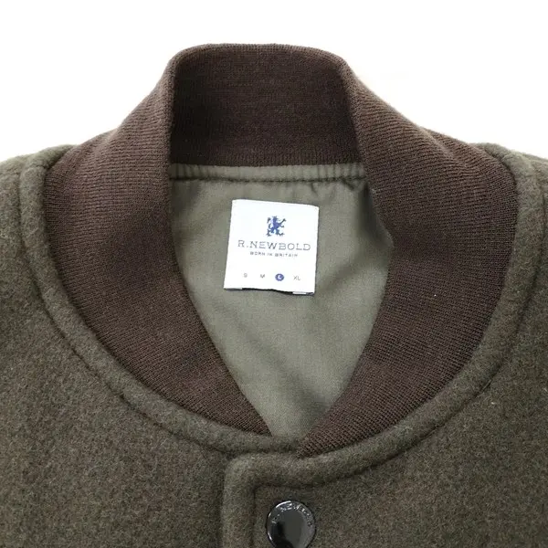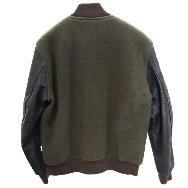 R.NEW BOLD アールニューボールド 袖レザースタジャン L カーキ ブルゾン 牛革 フルジップ