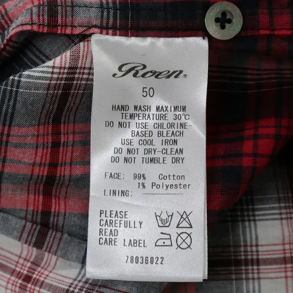Roen ロエン 半袖 チェック柄 シャツ 50 レッド×ブラック×ホワイト スカル ライトストーン スタッズの買取金額