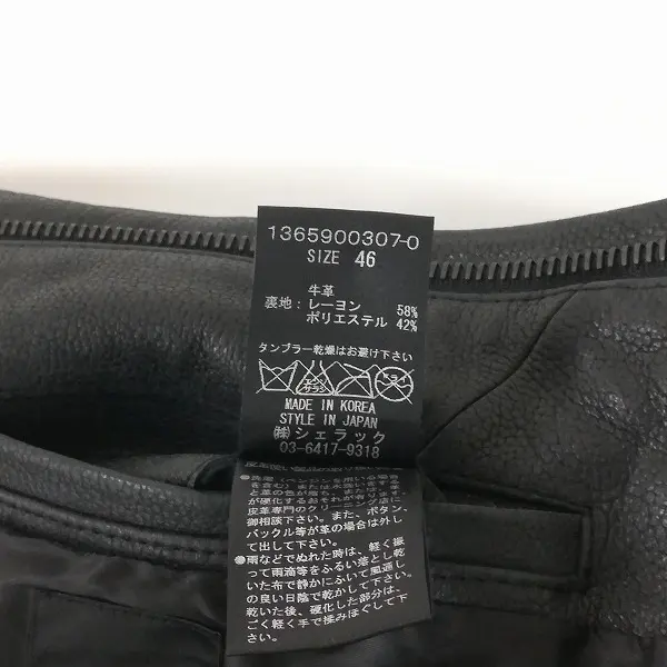 SHELLAC シェラック レザージャケット 牛革 46 ブラック 牛革 日本製の買取金額