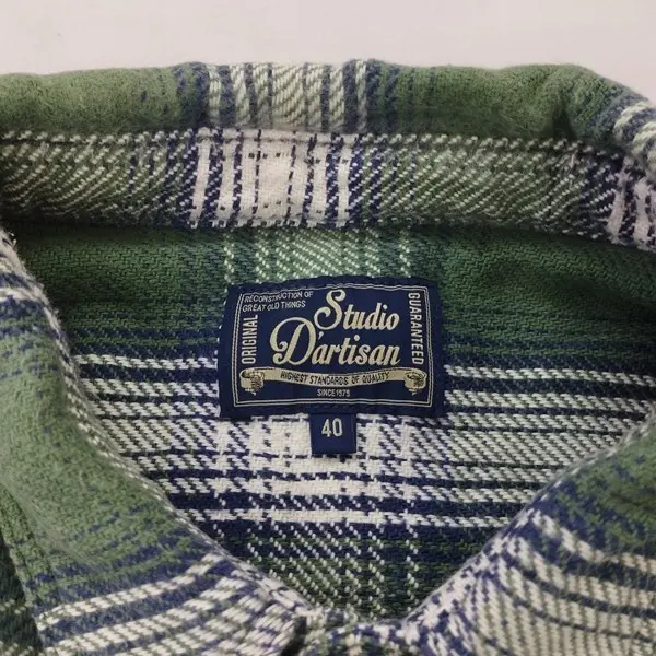 STUDIO D'ARTISAN ステュディオ ダルチザン ネルシャツ 40 グリーン系 長袖 チェック柄 日本製 綿100