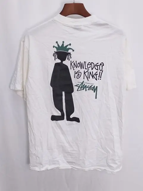 STUSSY ステューシー 80s 半袖Tシャツ KNOWLEDGE IS KING!! L ホワイト シャドーマン 黒タグの買取金額