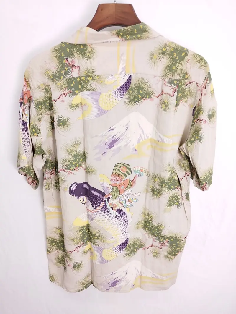 SUN SURF サンサーフ アロハシャツ M ベージュ系 SS34179 半袖 レーヨン 和柄 鯉