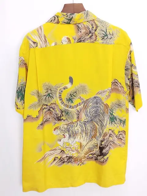 SUN SURF サンサーフ 半袖 アロハシャツ L イエロー系 シルク スペシャルエディション TORA SS30213