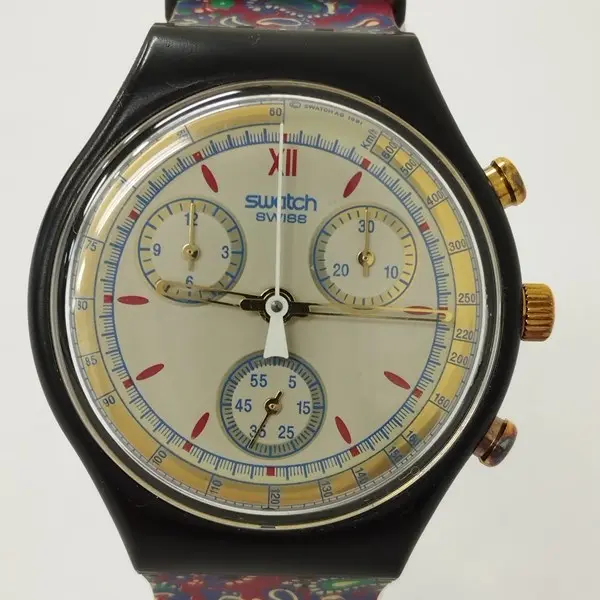 Swatch スウォッチ CHRONO 腕時計 マルチカラー ペイズリー柄 クロノグラフの買取金額