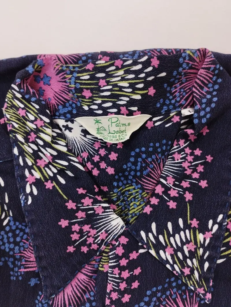 THE FLAT HEAD フラットヘッド アロハシャツ S ネイビー 半袖 花火 レーヨン100% PALMS LABELの買取金額