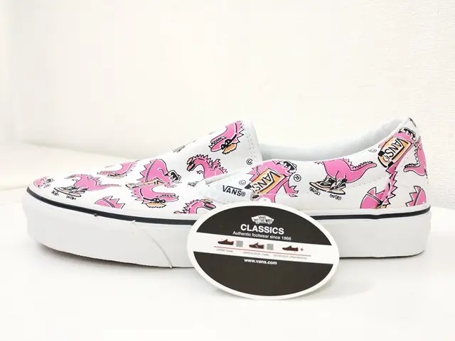 VANS ヴァンズ スリッポン スニーカー US7.0 US6.5 マルチカラー VANOSAUR 恐竜柄 Hello Kittyの買取金額