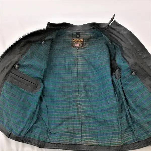 Vanson Leathers バンソン シングルライダースジャケット 34 ブラック 25046663 裏地チェック柄