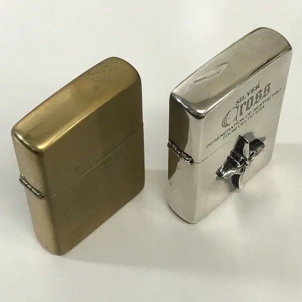 ZIPPO ジッポー オイルライター SOLID BRASS ゴールド 2000年 クロス シルバー 2005年 計2点 喫煙具の買取金額