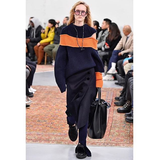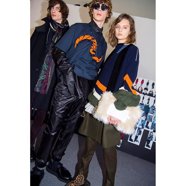 メンズのコレクションとウィメンズのプレコレクションを合同で行うショーのみならず、「サカイ」は今シーズンから新たにユニセックスラインをローンチした。どうやらTシャツやセーターといったニットウェア類や、ショーでも男女問わず着用しているネックレスがユニセックスラインの商品となるようだ。