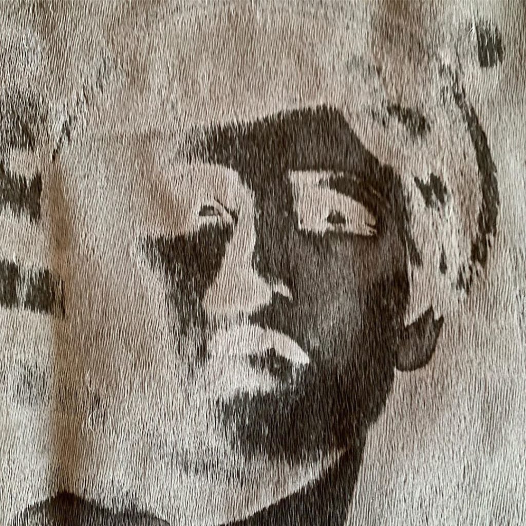 ショーのところどころに、アメリカの写真家である、シンディ・シャーマンの作品を起用。セルフポートレートによる作品をメインとしていたシンディの姿が、プリーツやパッチワーク、デジタルジャカードなど、様々な表現方法によって黒一色の世界に浮かび上がった。