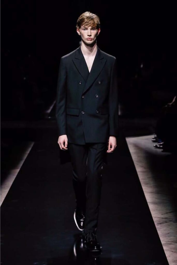 また、テーラードジャケットの大半が、ダブルブレステッドであることにも注目したい。ダブルのジャケットは、次項のアンダーカバーやドリス・ヴァン・ノッテンなど、今期はいくつかのメゾンで中心的に登場した。ジャケットの中でも、特にトレンドアイテムとなるだろう。